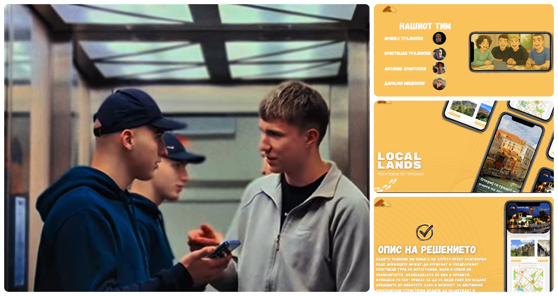 „ Со оваа апликација, туристите ќе добијат пристап до автентични приказни и историски факти што се пренесуваат од колено на колено преку локалците. Уште еден проблем е тоа што туристот кога пребарува општи податоци за градот добива многу спонзорирани препораки кои не му одговараат. Нашето решение им помага на луѓето преку платформа каде локалците можат да креираат и споделуваат сопствени тури со фотографии, мапи и описи на знаменитости. Апликацијата ќе има и премиум функција со 360° приказ за да се види како изгледале локациите во минатото, како и можност за вистински лиценцирани туристички водичи да објавуваат и продаваат свои тури директно преку платформата. Решение на вториот проблем ќе има AI чат бот со кој корисникот ќе може да комуницира и добива препораки по негови барања. Бизнис моделот е базиран на премиум услуга за корисниците и процентуална провизија од секоја продадена тура поставена од лиценцираните водичи. Со проширување на платформата на повеќе земји и градови, Local Lands ќе може да расте глобално и да стане водечка платформа за локални туристички искуства ширум светот,“ стои во објаснувањето за оваа уникатна бизнис старт ап идеја.