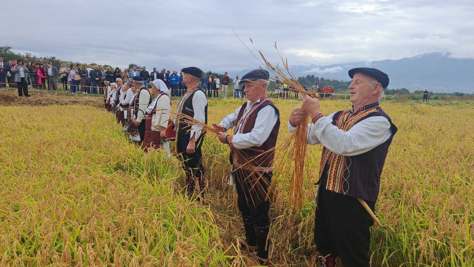 На нива кај Институтот за ориз, претставници на Здружението на пензионери – Кочани и на членови на ФА „Љупчо Сантов“ од Оризари ќе го прикажат обичајот зажнејување.