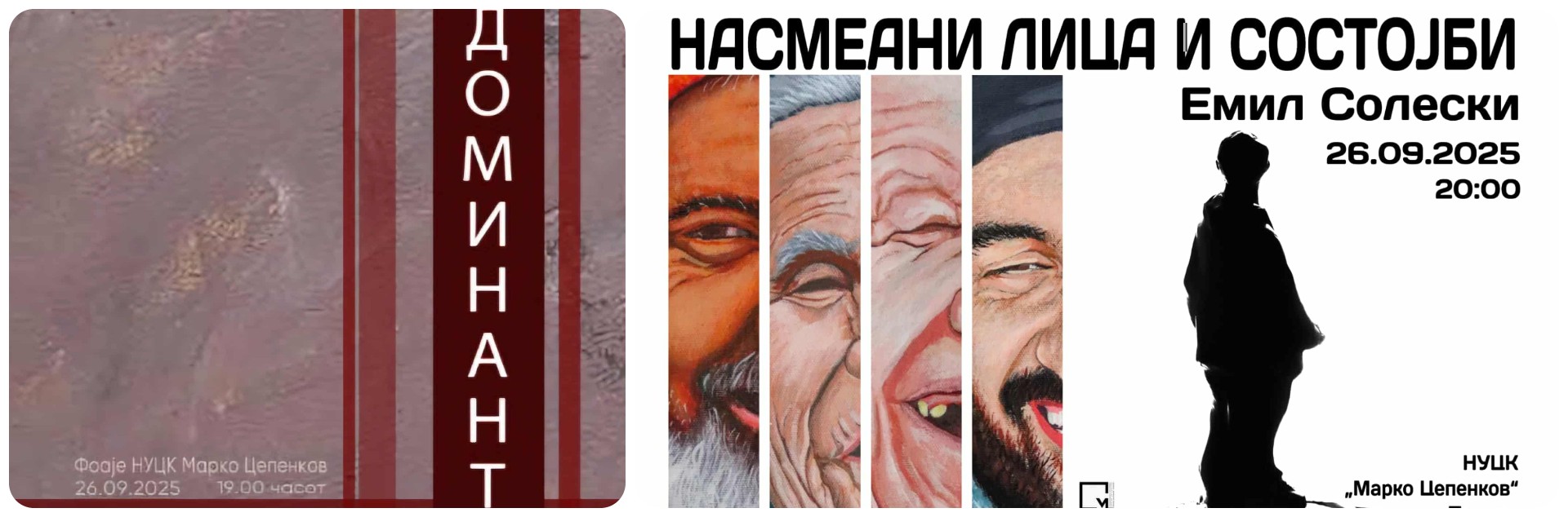Истиот дена (26 септември 2025/ петок/) од 20.00 ч. ,пак, во Ликовната галерија од ЦК „Марко Цепенков“ ќе биде отворена изложбата на дела „Насмеани лица и состојби“ од прилепскиот уметник Емил Солески.