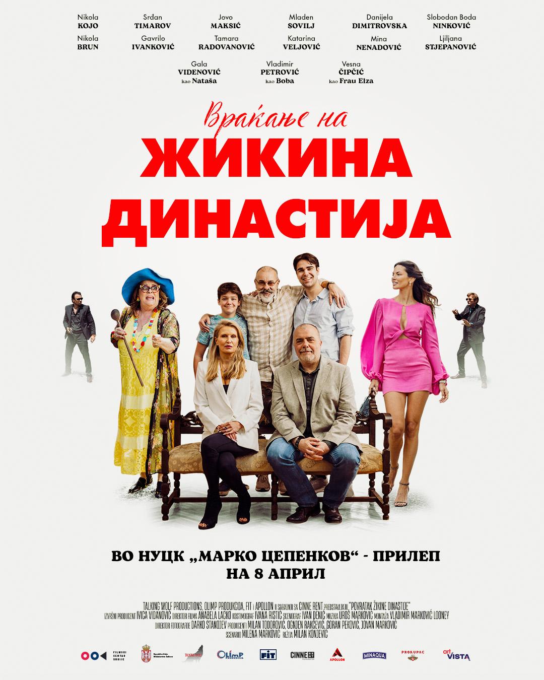 Никола Којо му се враќа на ликот на Миша Павловиќ по повеќе од 30 години. На Миша во Србија му доаѓаат синовите кои долго не ги видел зашто живеат со Наташа во Москва. Кога пристигнуваат момчињата што ги носат имињата на своите прадедовци – Жика и Милан, започнува нова луда година полна со смеа, авантура, но и семејни вредности. Филмот „ВРАЌАЊЕ НА ЖИКИНА ДИНАСТИЈА“ е со времетраење од 100 мин, билети пред почетокот на проекциите.