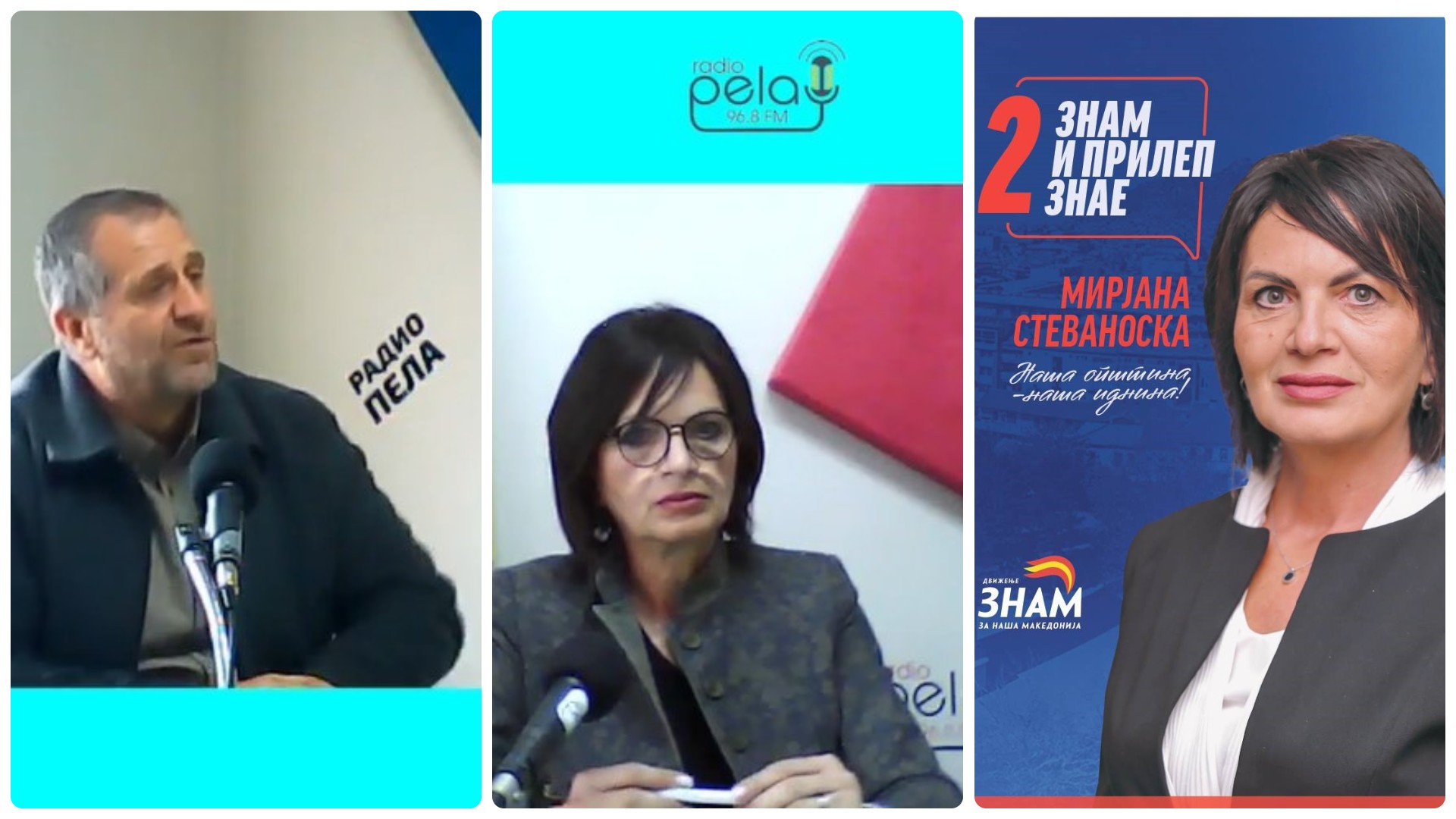 Радио Пела : Одите со советничка лисата, а на неа многу млади луѓе, луѓе кои се народни, луѓе кои се докажани професионалци во својата професија како што е Мирјана Стеваноска, носителот на листата за Советниците од Движењето ЗНАМ „За Наша Македонија“. Стеваноска по што се разликувате од кандидатите од другите советнички листи, кои во Прилеп ги има 10? Бидејќи , генерално сите ветуваат, предлагаат и нудат идеи?