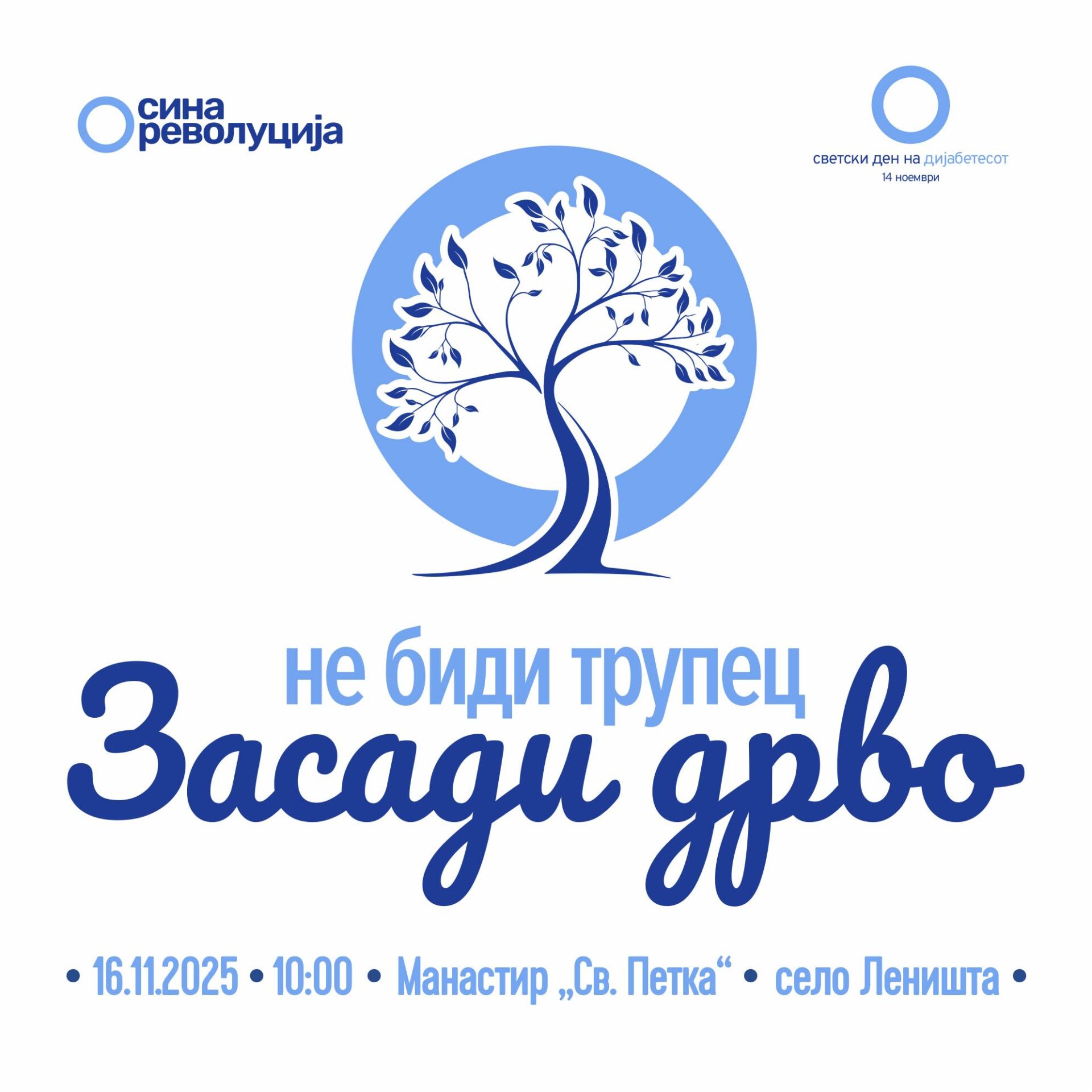 По повод Светскиот ден на лицата со дијабетес – 14 ноември и негово одбележување, во општина Прилеп ќе се реализира третата по ред акција за пошумување под мотото „НЕ БИДИ ТРУПЕЦ, ЗАСАДИ ДРВО“, во организација на „Сина Револуција“. Акцијата ќе се реализира на 16 ноември 2025/ недела/ од 10.00 часот кај манастирот св. Петка во Лениште.