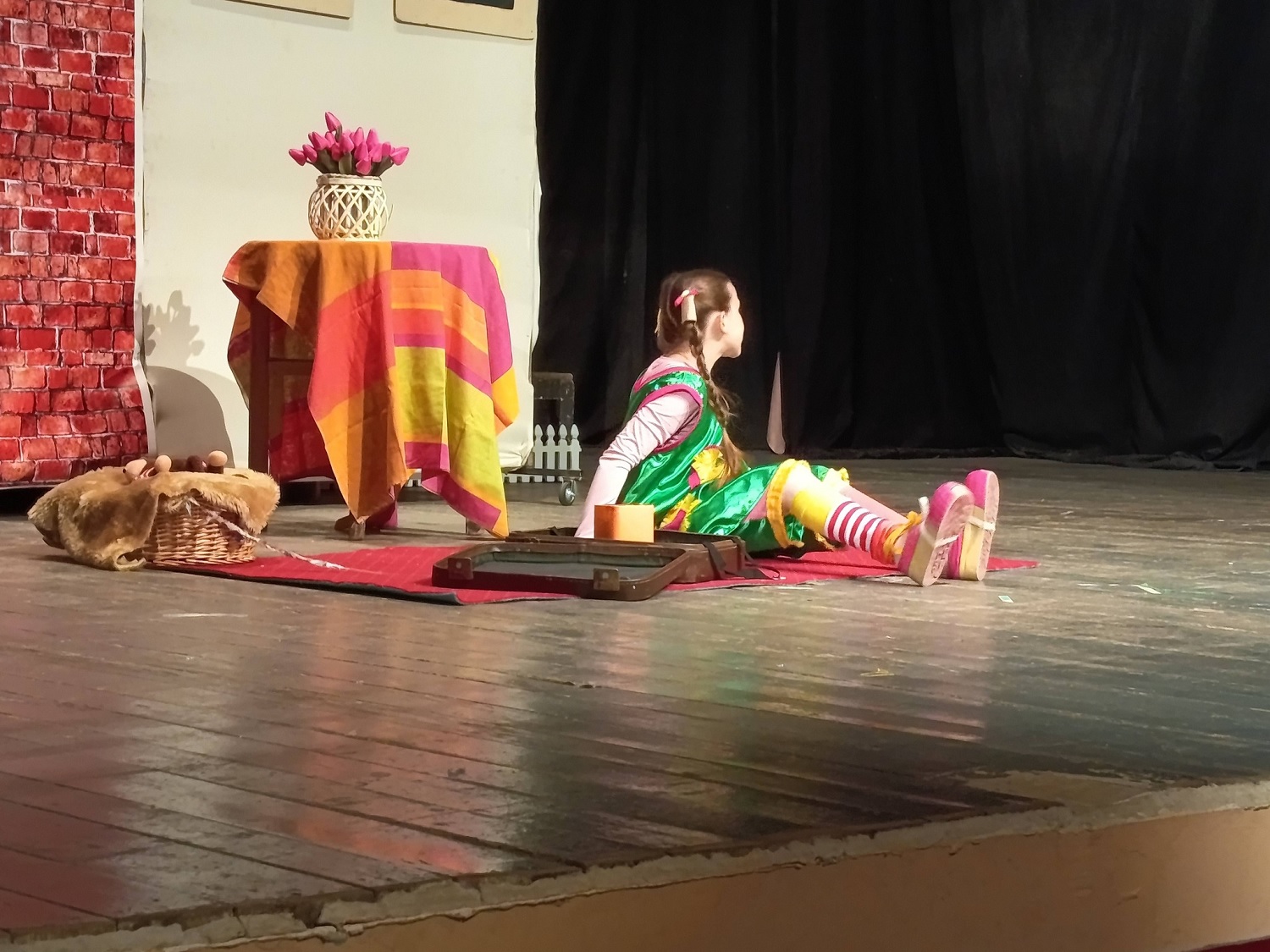 Играат членовите на драмското студио на кочанската Национална установа. Улугата на Пипи ја имаше Илина Дојчинов и ја издржа целата динамика на претставата во текот на сите педесетина минути.