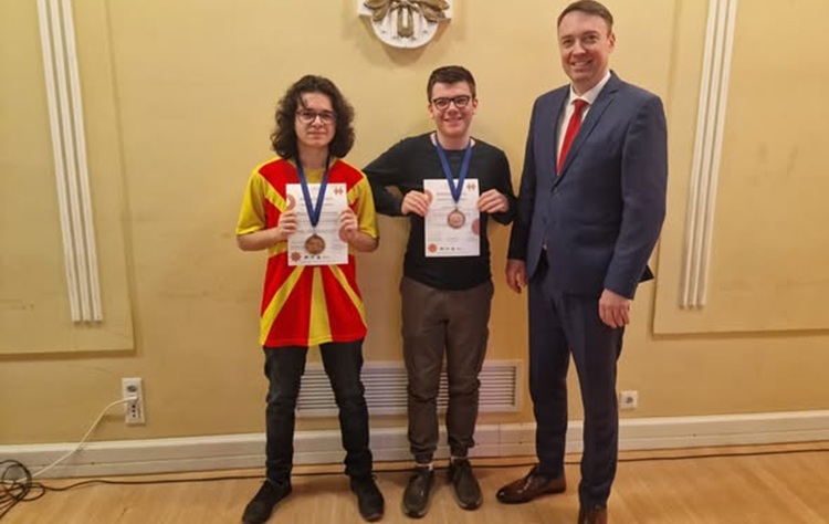 “Натпреварувачи Благој Рујаноски Стојаноски од гимназијата “Мирче Ацев” од Прилеп и Андреј Ангелов од Математичко информатичката гимназија од Скопје освоија бронзен медал„, со гордост соопшти на својот профил на Фејсбук македонскиот амбасадор во Словенија, Горан Милевски.
