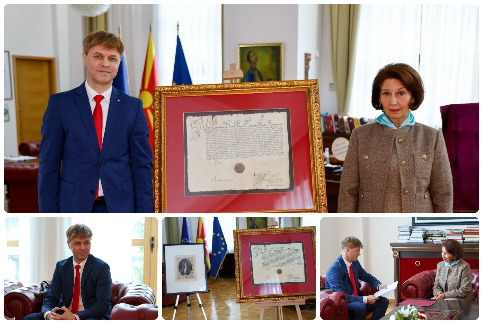 Професорот Георги Гоце Дуртаноски и’ ја врачи на претседателката Гордана Сиљановска-Давкова првата копија од Привилегијата  дадена на Македонците од Светиот римски цар Леополд Први Хабзбуршки во 1690 година во Виена. Овој историски документ е од огромна важност и денес кога Македонија и Македонците се соочуваат со негирање на етничката, културната и историската посебност.