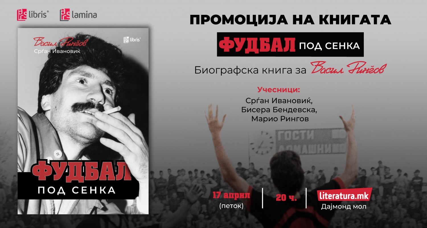 Биографската книга „Фудбал под сенка“, посветена на легендарниот македонски фудбалер Васил Рингов, во авторство на новинарот Срѓан Ивановиќ, ќе биде промовирана на 17 април (петок), во книжарницата „Литература.мк“ во „Дајмонд мол“, со почеток во 20 часот.