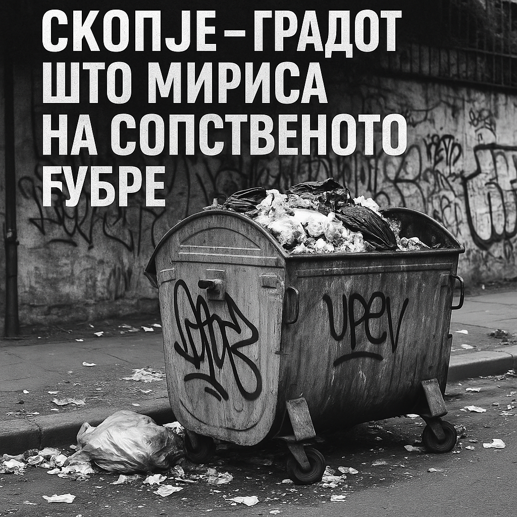 Пишува: Наташа Доковска Некои градови мирисаат на липа, некои на дожд. Скопје мириса на контејнер. На топол, прегреан контејнер што ја раскажува приказната за нашата цивилизација – онаа што се откажала од хигиената, но не и од оправдувањата. Денес, нашата „метропола“ личи на сцена од апокалипса: преполни канти што се прелеваат по улиците, купишта […]