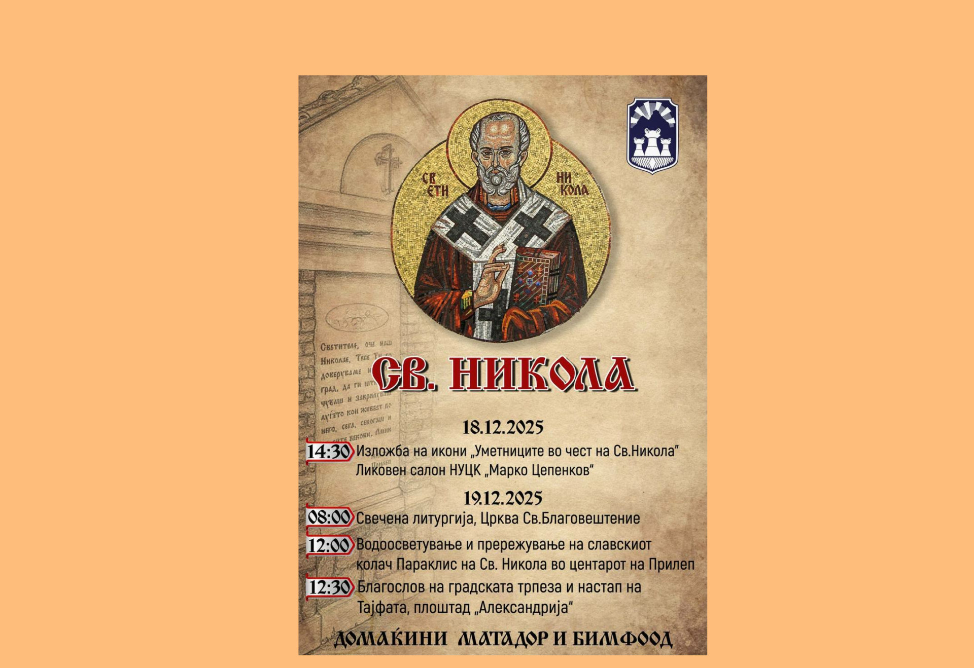 Чест и големо задоволство ми е да Ве поканам заедно да го прославиме големиот христијански празник Свети Никола, заштитникот и патрон на нашиот горд град Прилеп. Во име на домаќините на овогодинешната прослава, и во мое име, како градоначалник, Ве повикувам да бидете дел од традицијата која не обединува во духот на заедништвото, хуманоста и верата.