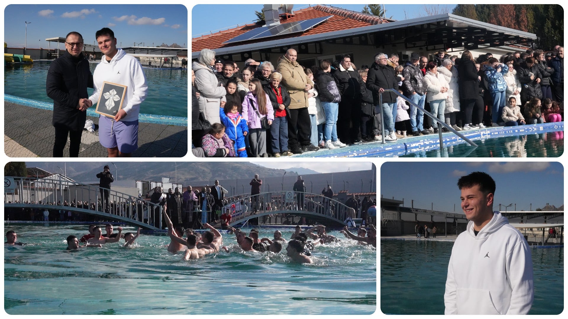 Јордан Ангелески, 17 годишник, ученик во прилепската гимназија е најсреќниот годинава кој го фати светиот крст од осветените води во базенот во Аква паркот на хотелот „Салида“ на централната манифестација за Богојавление -Водици во Прилеп.