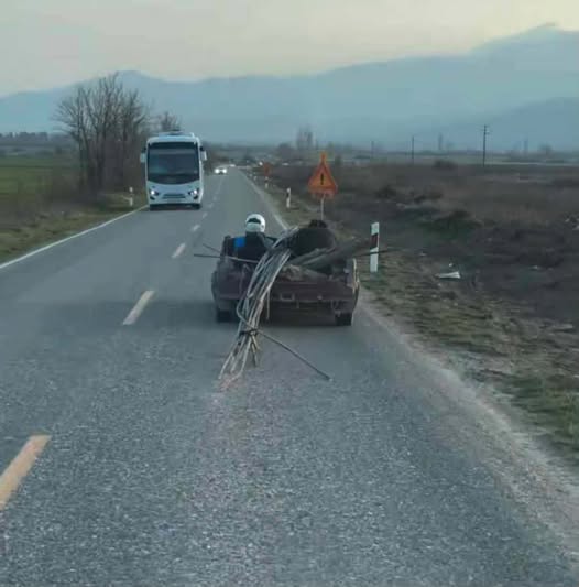 На стариот пат Прилеп – Битола,  и единсвениот пат што ги поврзува овие два града поради изградбата на новиот регионален пат,  може да се сретнат и вакви возила (фотографијата е од поратлот Апла, на кои реагираа многу граѓани, плашејќи се за безбедноста) .